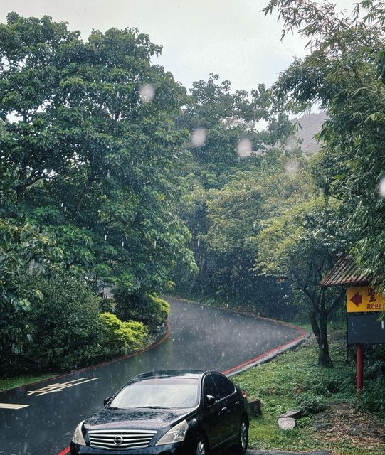 結果到山上就開始下雨了,只好安慰他換新車遇水則發XDD