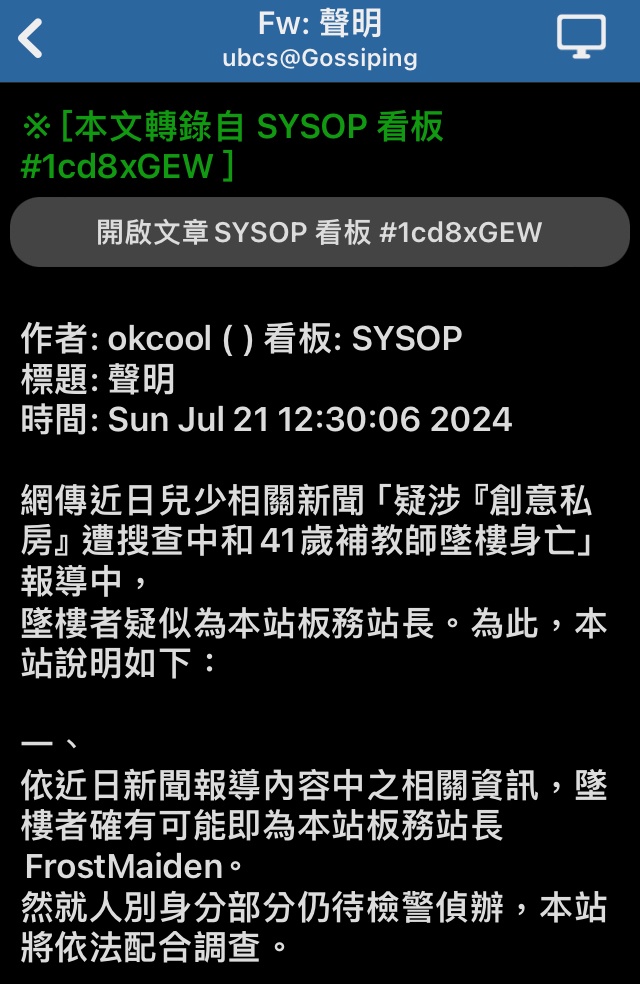 結果今天這個車版版主跳樓自殺了