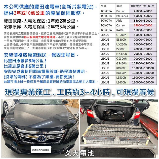 Camry的大電池好像也是折扣後6萬左右的樣子(電池本身打5.5折)