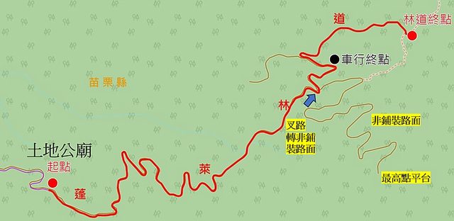首先是進入林道之後的土地公廟,現在這集合拍照清點人數,這裡是最好到達的地方,再