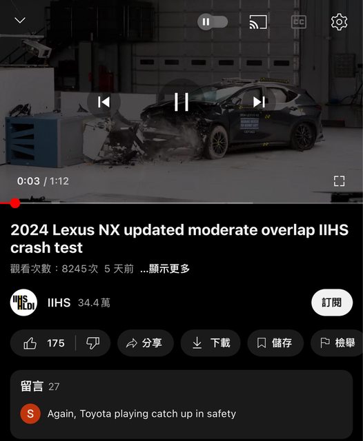 推 CakeCola: 查了 IIHS 網站 2024 NX 還是得到 TSP+ 08/07 19:45