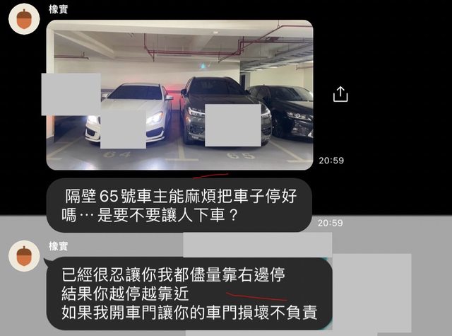推 Dusha: 姑且不論原原po停車對錯 在群組po那截圖應該是很不怕被刮 08/08 14:35