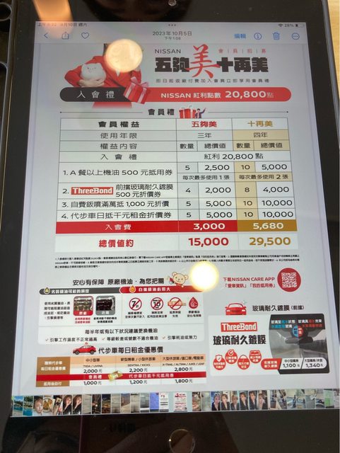 含機油、前擋鍍膜等等,乍看是挺划算的,但本身不是重度通勤族,不確定會員禮三年內