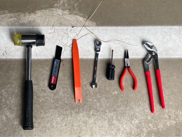 不過我手上沒電話簿與筆記簿,所以是用管鉗墊在底下,用橡膠槌由下往上敲