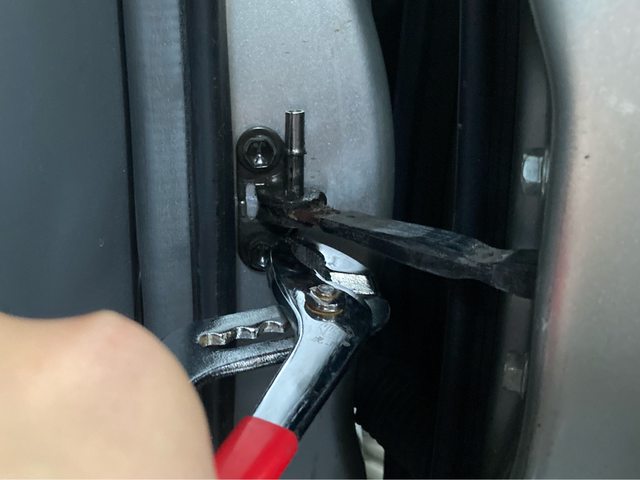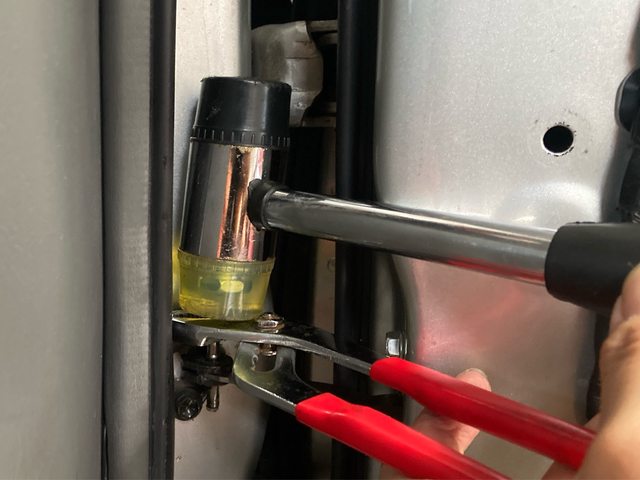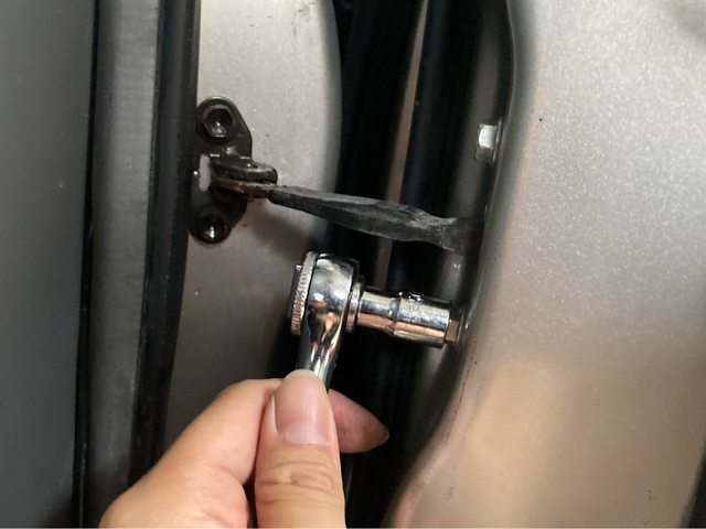 下一步拆車門上的固定螺絲,10號套桶就可以把2顆固定螺絲放下來