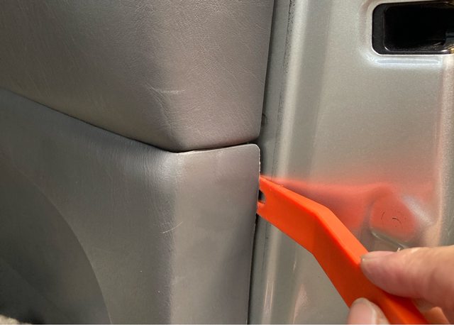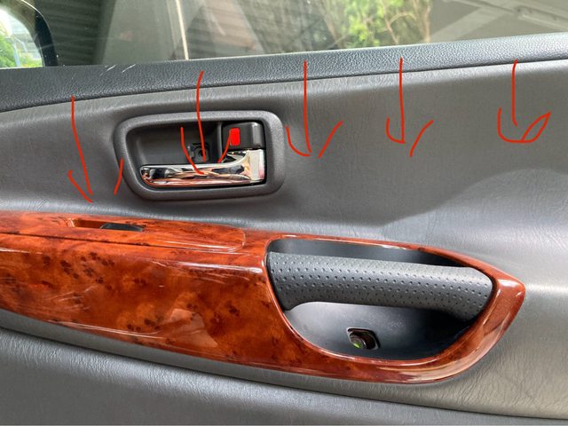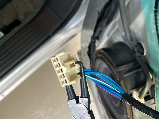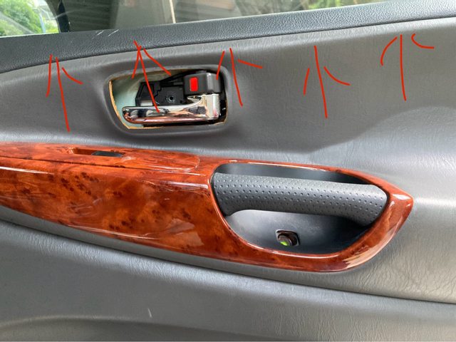 下門板時,要注意有兩條控制線頭要拆,主要是門邊燈與電動窗開關