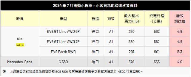 7 月份電動小客車以及電動小貨車、小客貨的耗能證明核發資料中,同樣也是有多款已經