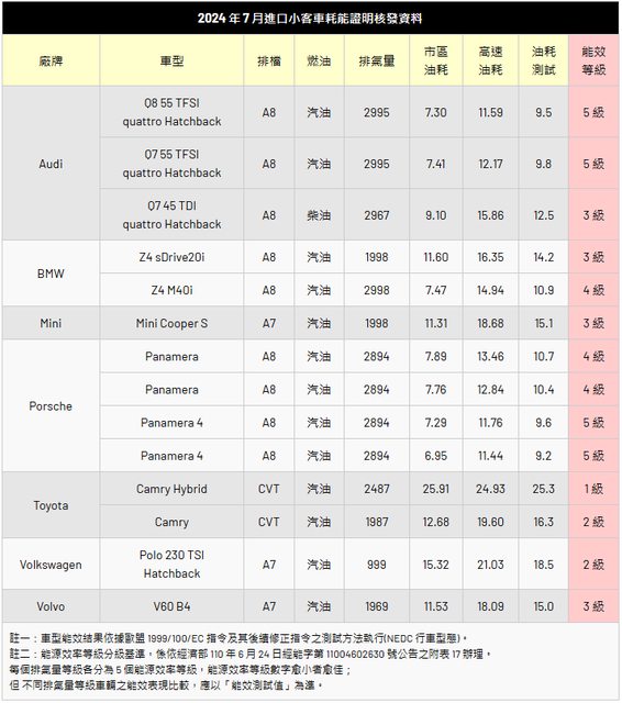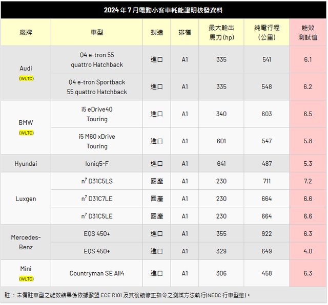 能源署公布 7 月份耗能以及電動車效能測試成績,除了有不少國內已經上市的產品在列