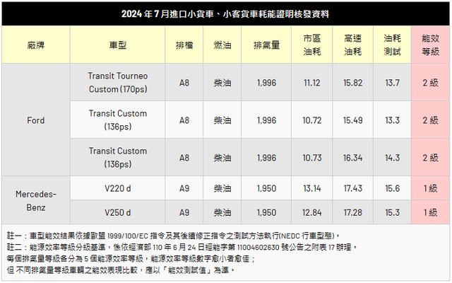 率等級為 4 級之成績。國產小貨車的 7 月份核發資料,則僅有福特六和送測兩款 Ford
