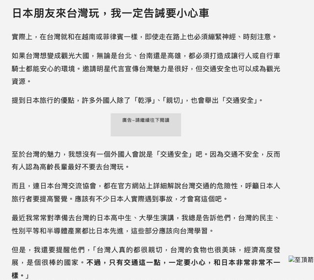 → TSUBO: 灣法規弄成路口有車卡著行人強硬衝上,他只是提醒日人到台 08/15 12:53