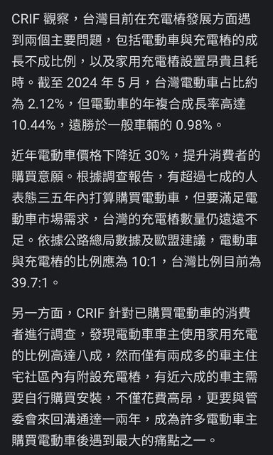 推 trickart: 在台灣 不是充電樁不夠 是免費的充電樁不夠 大部分開電 08/17 17:26
