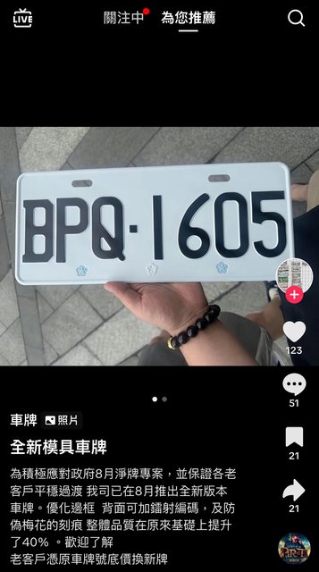 → pzwei: 比較抓不到,除非比對引擎號碼,這假牌比較貴 08/18 23:11