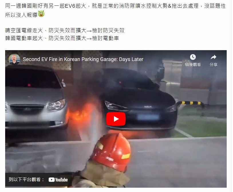 推 willie0171: 開頭先趕快闢謠,電車起火率低,免得被澱粉出征 08/24 07:02