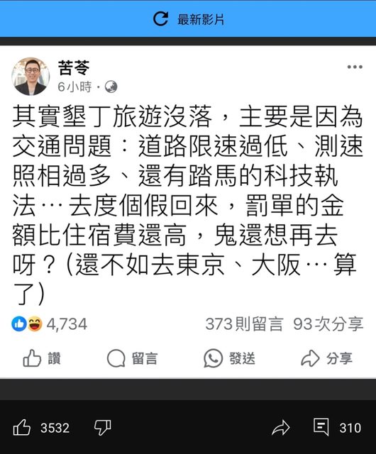→ castorfi: 其他問題很多不代表限速沒有問題耶,我都是半夜下恆春, 08/27 15:56