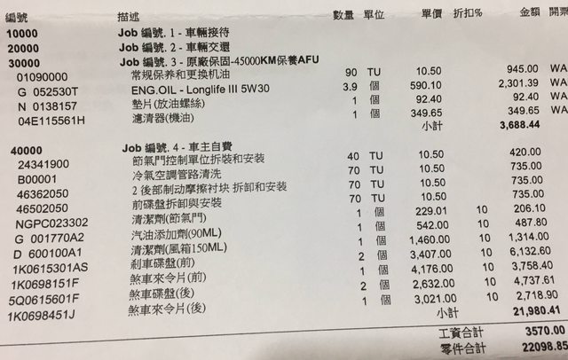 → weiojo3: 估價單開成這樣子你還敢在這家保養嗎 09/01 15:01