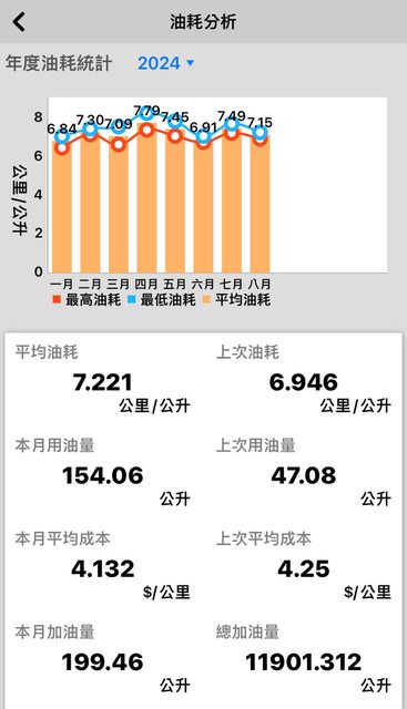 既然說到油耗了,那麼就來看看這幾年的平均油耗吧,嗯…7.多,油錢大概一個月5000左