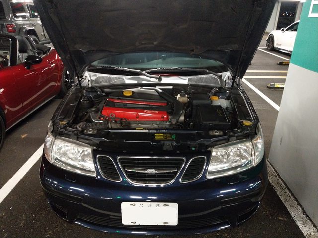 : 當時一進場就注意到一台顧得很好的深藍色 9-5,從全車漆面、引擎上蓋烤漆、配得恰