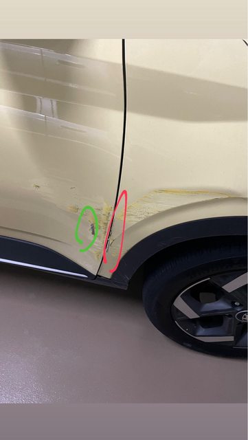 綠圈處那個灰色是牆壁的水泥不是車漆
