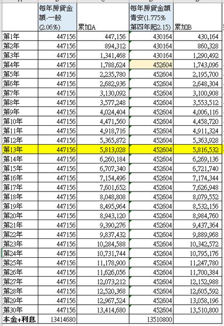 推 smile813: 青安不就是40年限比較有優勢嗎?如果你貸得到2.06又是 07/14 22:16