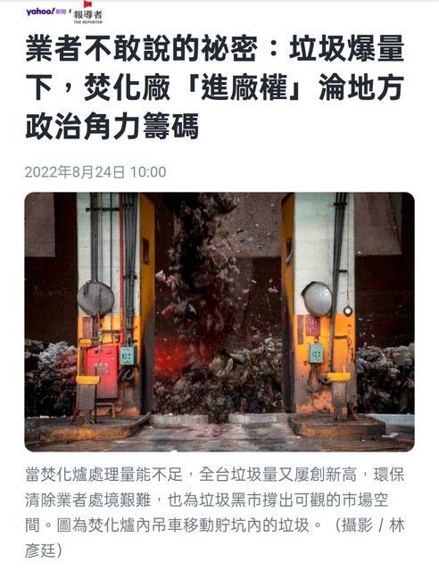 : 欣榮焚化廠2周前有座焚化爐因底渣的出渣器堵塞導致故障,期間每天有300噸一般垃圾