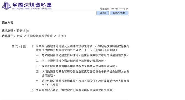 → junior020486: 貸款總額/總存款不是有銀行法72-2限制了嗎XD 07/17 22:39