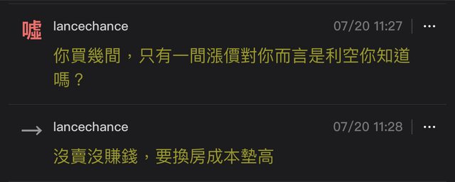 → aa88645: 你要不要聽看看你在講啥 本篇都說了房價上漲換房難 你又 07/20 12:18