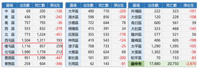 台中市也有淨出生與淨遷入,都是正成長的區域,這也意味著區域仍具備人口紅利。根據「