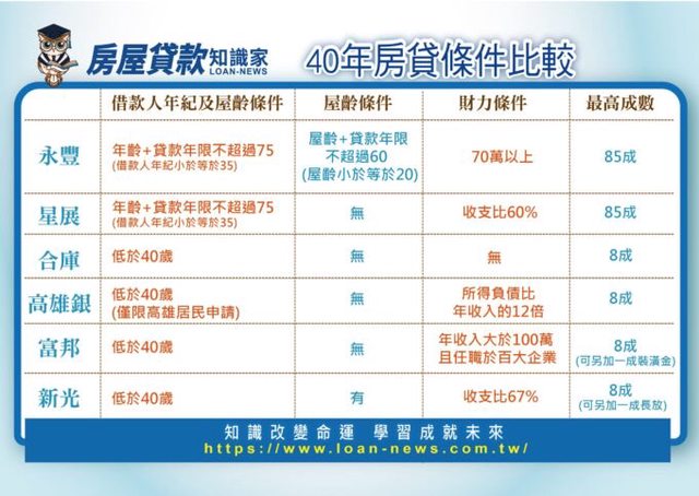 : 方案一:搭配房貸壽險,可儘量調整貸到8成、年限40年、寬限3年(保額656萬、保障期
