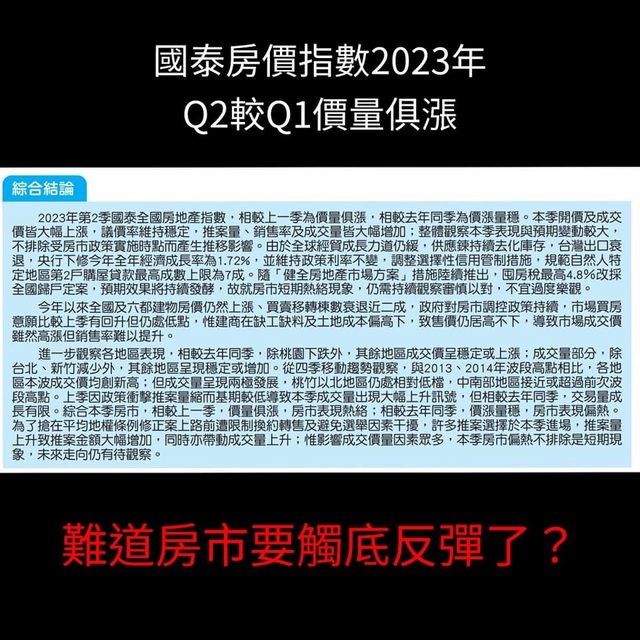 → yesyesyesyes: 當初他拿國泰的數據說房價在跌 現在不認帳嗎 ? 08/01 09:55