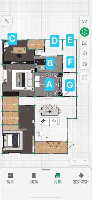 變成BD大後陽台、EF變廚房、G放櫃子收納區