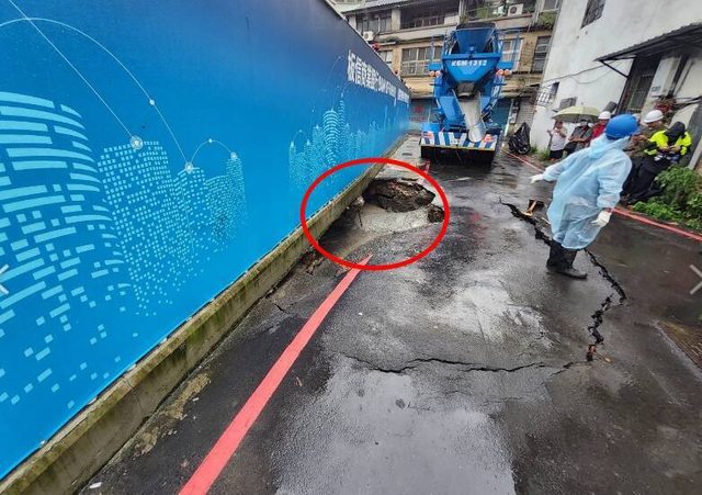長3公尺、寬2公尺、深度1.5公尺,幸無人受傷,消防局獲報已在現場劃設警戒線,並成