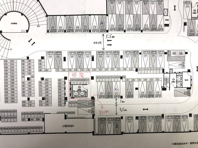 推 Adam6613: 偏好A 不會選C C後面是機車位 然後從A走到梯廳的捷徑 08/24 16:49