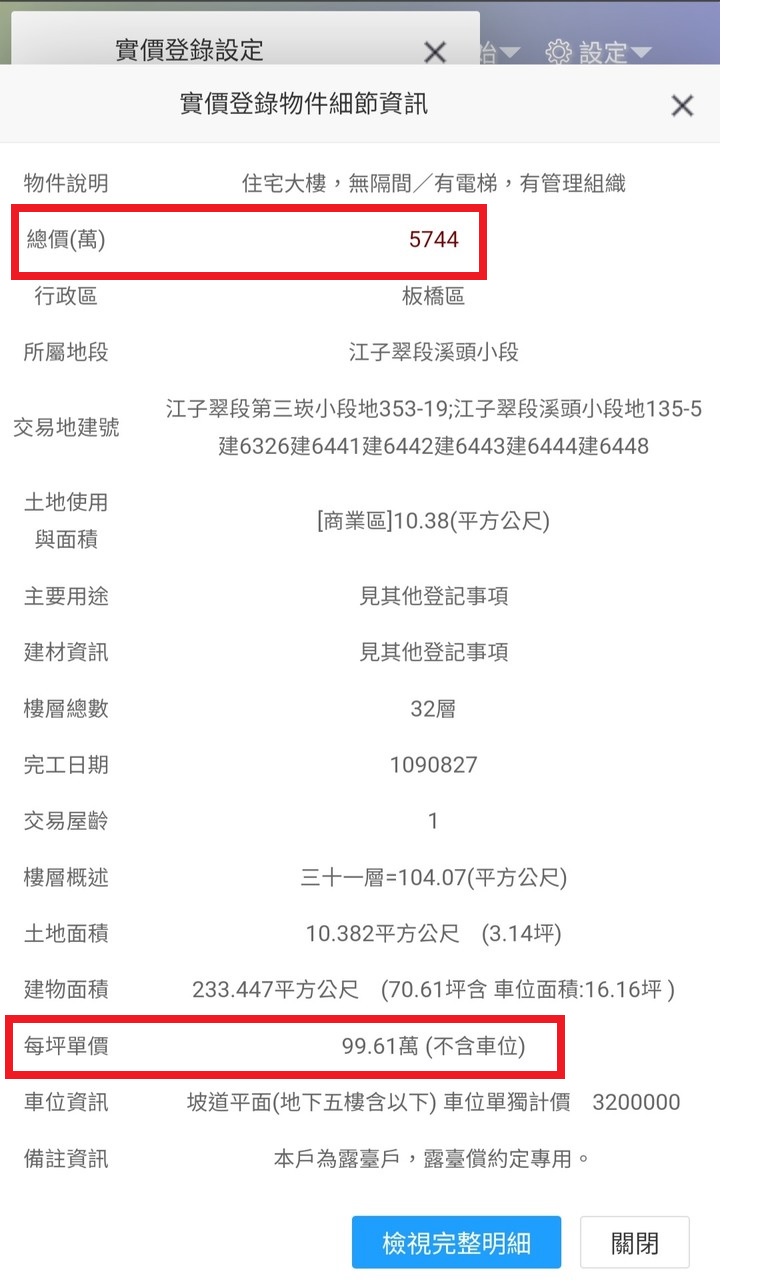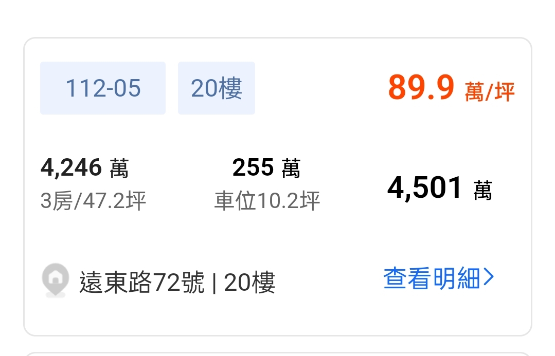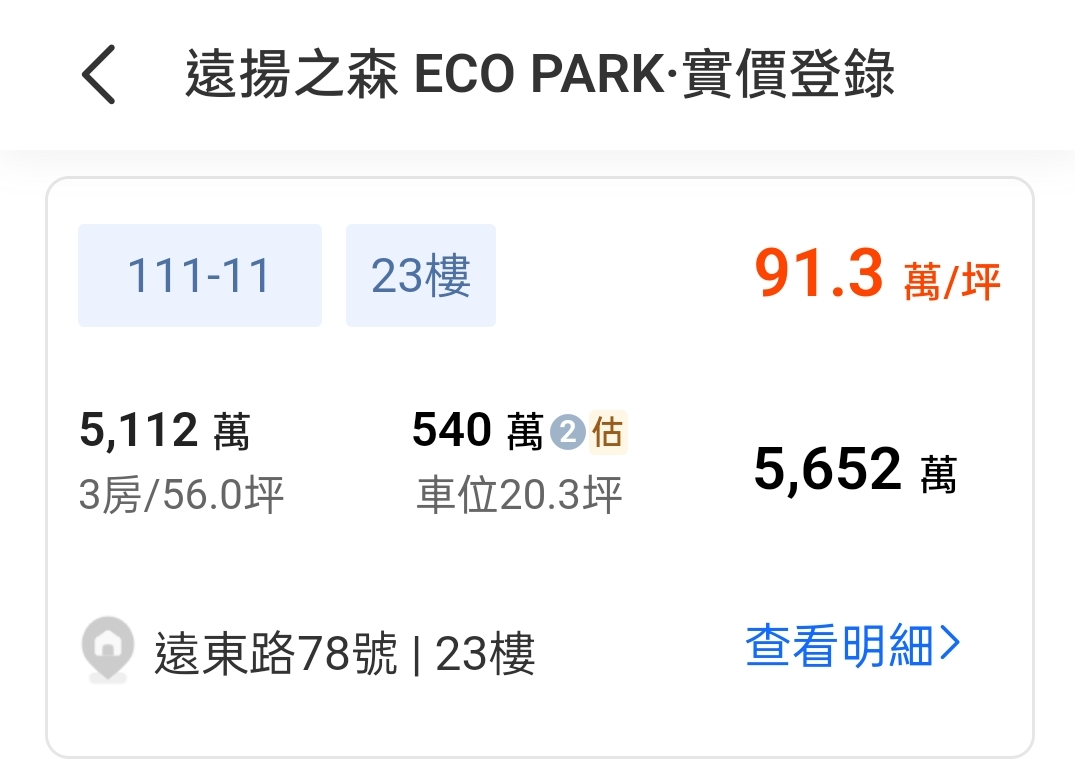 → Elio2021: 遠揚之森目前實登最高價95.X萬/坪. 玳門92.X萬/坪 09/05 16:12