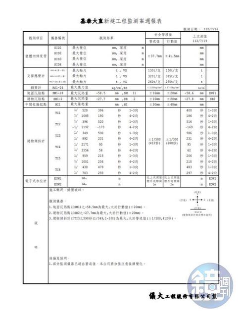 【獨家】【監測報告曝人禍1】基泰大直監測資料曝光 坍塌前44天儀器已超出警戒值