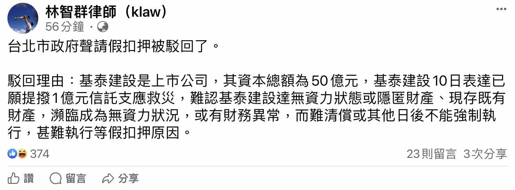 推 dosiris : 基泰:好險沒把一億匯給市府專戶 09/12 19:30