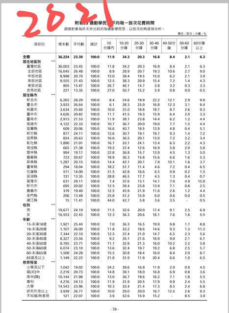 : 以下是包含臺灣和日本在內的10個國家的平均上班族單程通勤時間(以分鐘為單位):