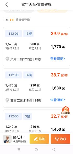 : 持在3字頭,出現些微降幅,可能跟建商開始讓利有關,尤其坪數偏大的物件,在目前市