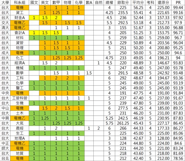 如此 各科系的排名已經很清楚了