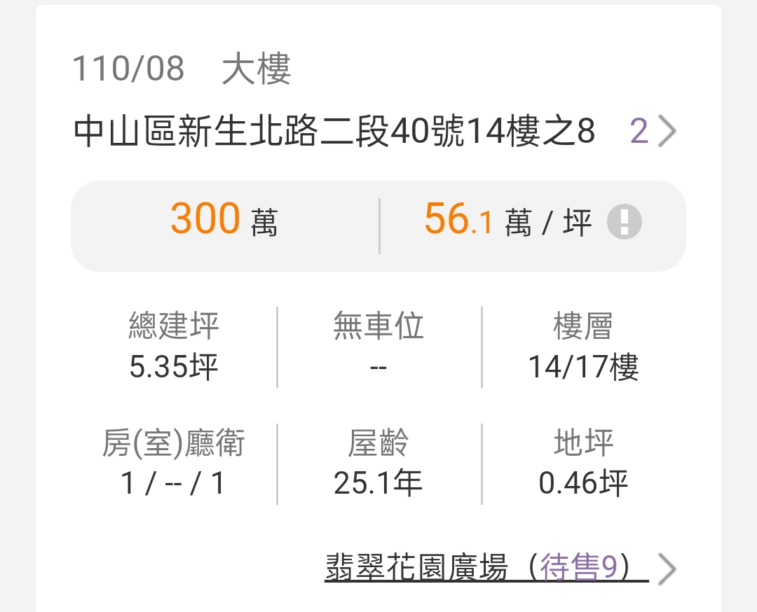 → kusomanfcu: 我實價登錄找一個來看 09/27 17:56