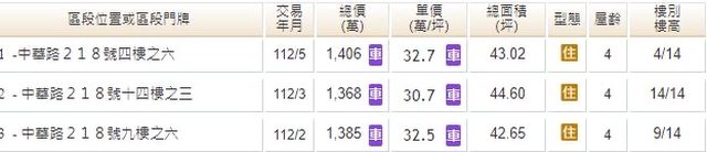 本物件附近地址實價登錄 :