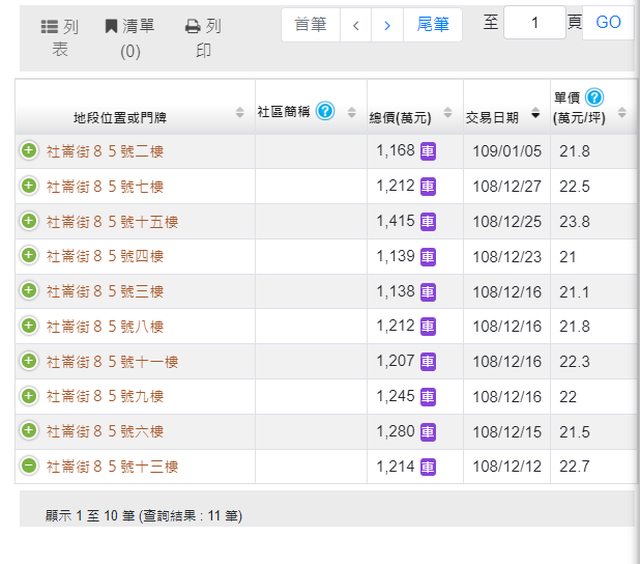 本物件附近地址實價登錄 :
