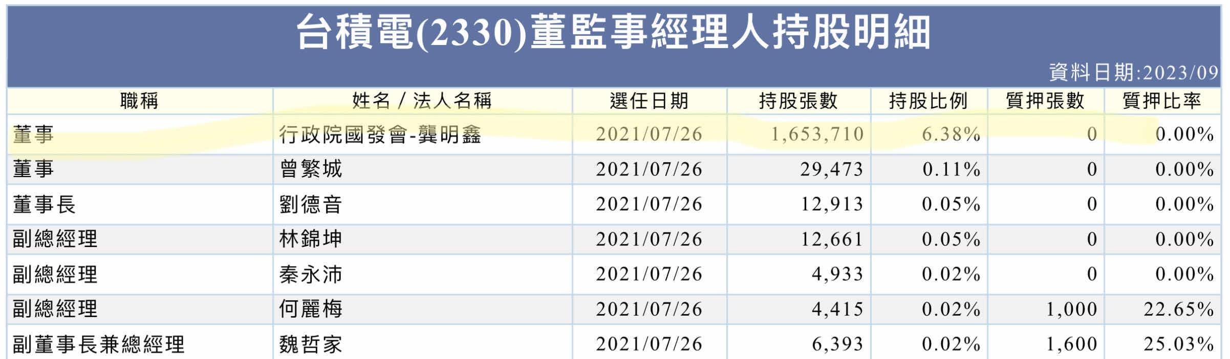 ,他不清楚此事;國發基金執秘蘇來守則說,台積電沒有提議案的話,應該是還沒有做決