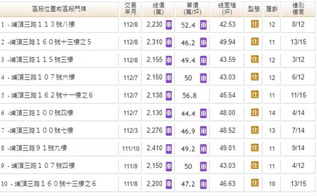本物件附近地址實價登錄 :