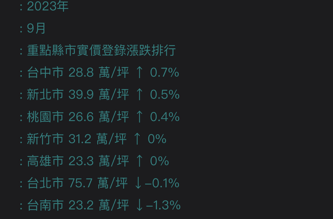 推 slg: 國泰指數應該只有看預售跟新成屋,所以價格都會比其他指數高 10/25 23:12