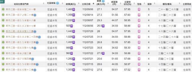本物件附近地址實價登錄 :