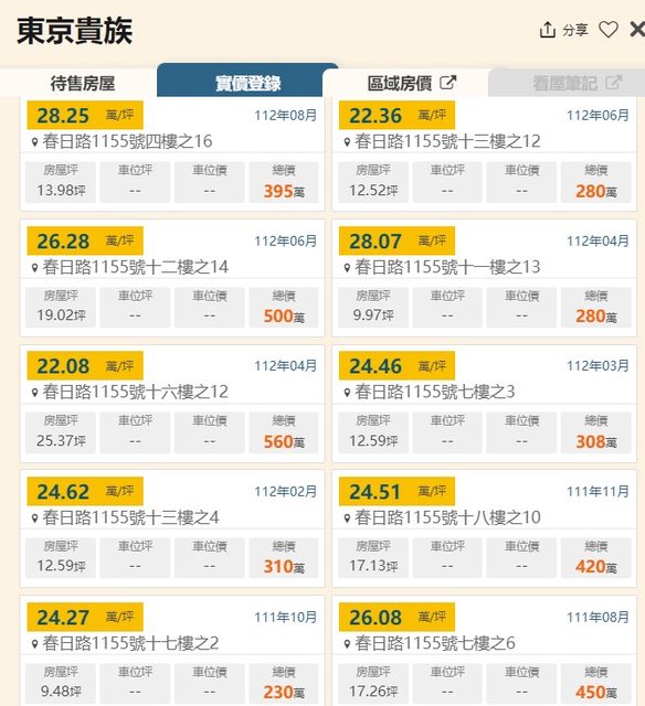 本物件附近地址實價登錄 :