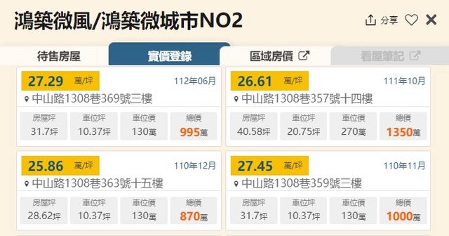 本物件附近地址實價登錄 :