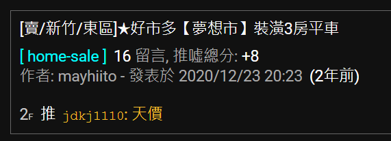 推 y30103123: 新竹就是要破百的,根本便宜 11/09 15:53