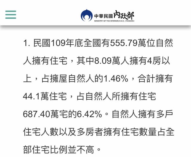 推 straggler7: 全台900萬間房子有房族800萬租屋族300萬小孩500萬 11/12 13:31