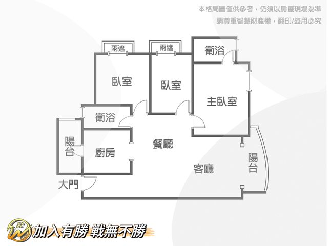 * 格局 : 3房2廳2衛2陽台